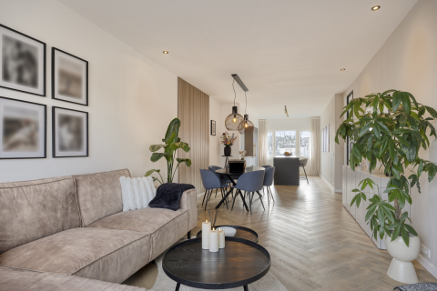 This well-maintained, five-room (previously 6) semi-detached house with a sunny backyard facing southwest and bordering the water is located in the child-friendly neighborhood 'Karmoy'. The house has 11 solar panels and energy label A. The adjacent, indoor space has been incorporated into the living room from the construction, making this space extra spacious and wonderfully light! The divided attic floor with two dormers at the rear has, among other things, a second bathroom. Parking is possible on the private driveway. The houses in the neighborhood are built in Scandinavian style and provide a cheerful living atmosphere and are very low-maintenance. Green and recreational facilities, shops, schools, public transport and arterial roads can be found in the area.